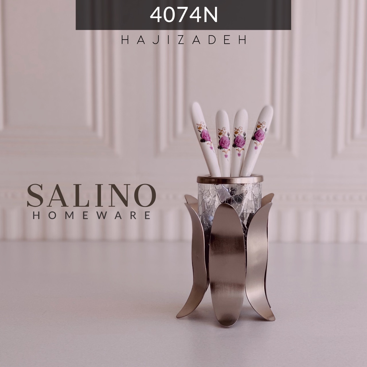 سالینو جا شمعی تک پایه کوتاه طرح گل 4074N