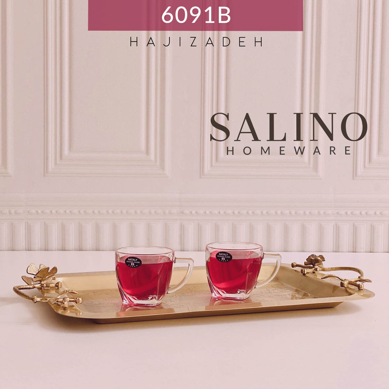 سالینو پروانه طرح برنجی سینی مستطیل بزرگ 6091B