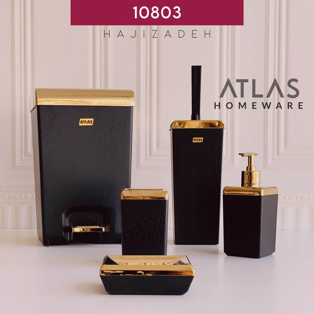 امتیاز و دیدگاه کاربران اطلس ست بهداشتی 5 تیکه مشکی طلایی طرح چرم مدل زاگرس 10803