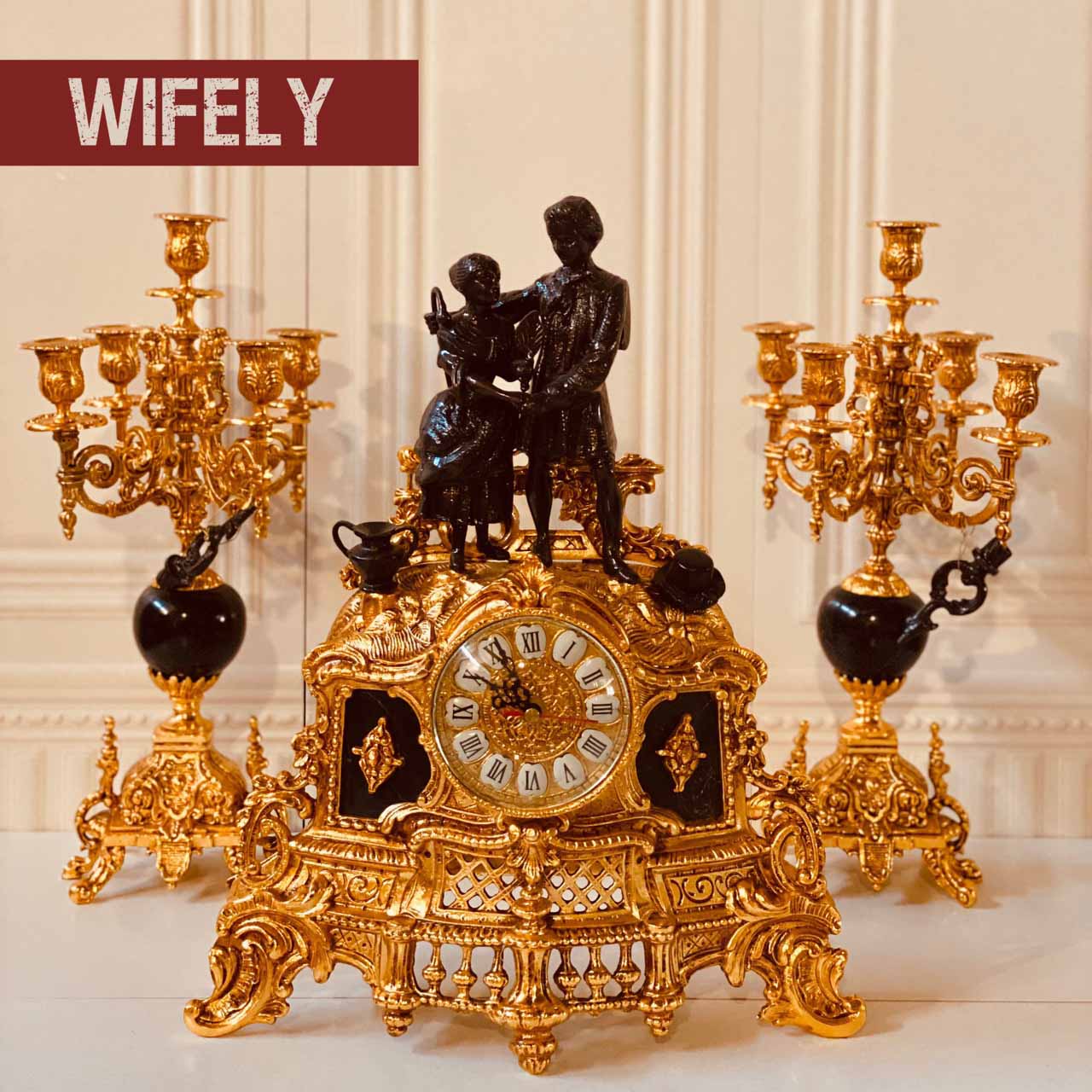 امتیاز و دیدگاه کاربران اپادانا برنجی ساعت و شمعدان رومیزی طلایی زن و مرد 7565
