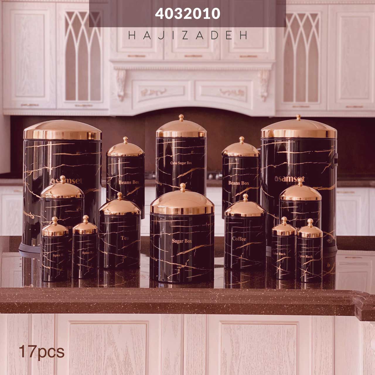 امتیاز و دیدگاه کاربران سام ست سرویس اشپزخانه 17 پارچه ماربل مشکی درب طلایی 4032010