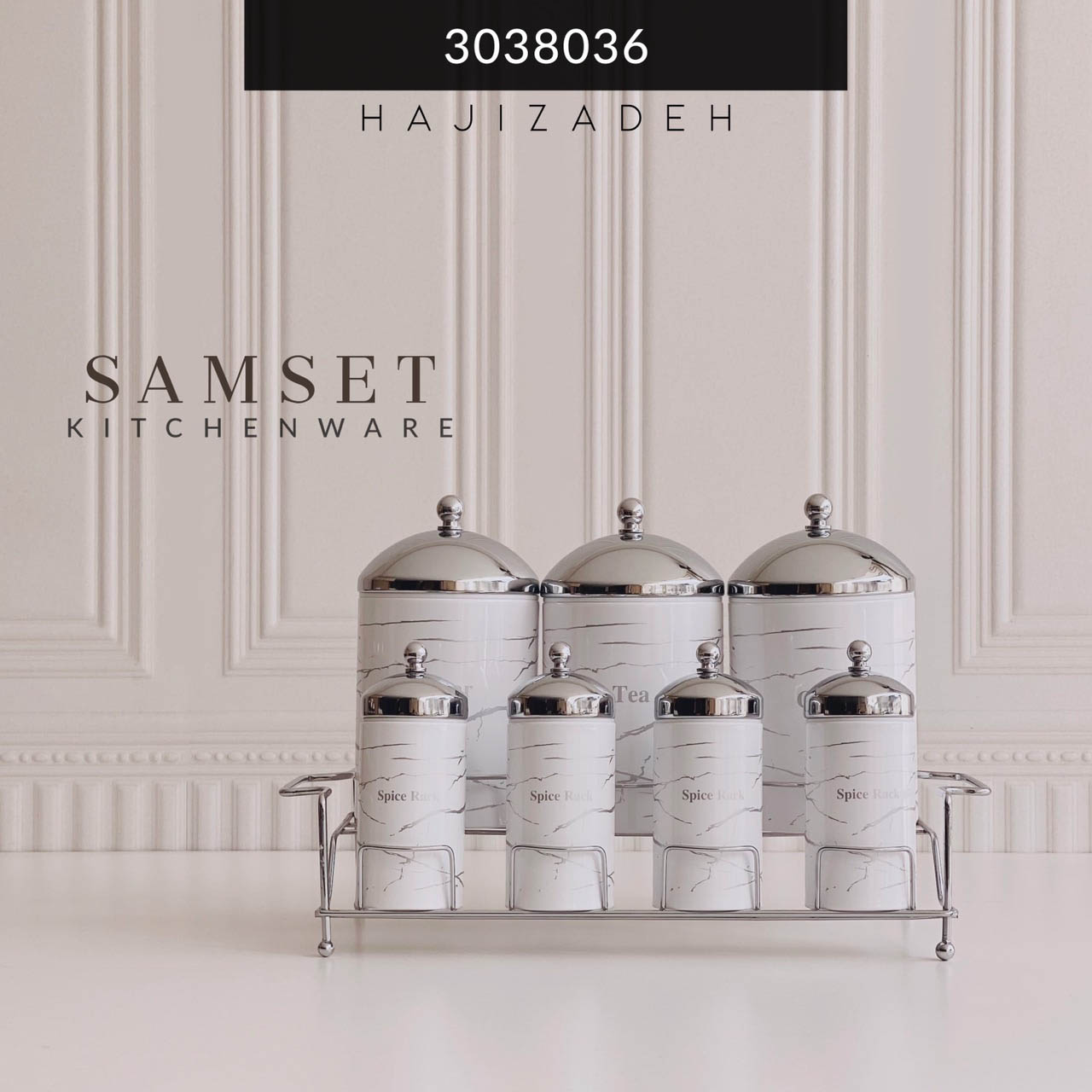 سام ست پاسماوری 8 پارچه ماربل سفید درب کروم SET-3038036