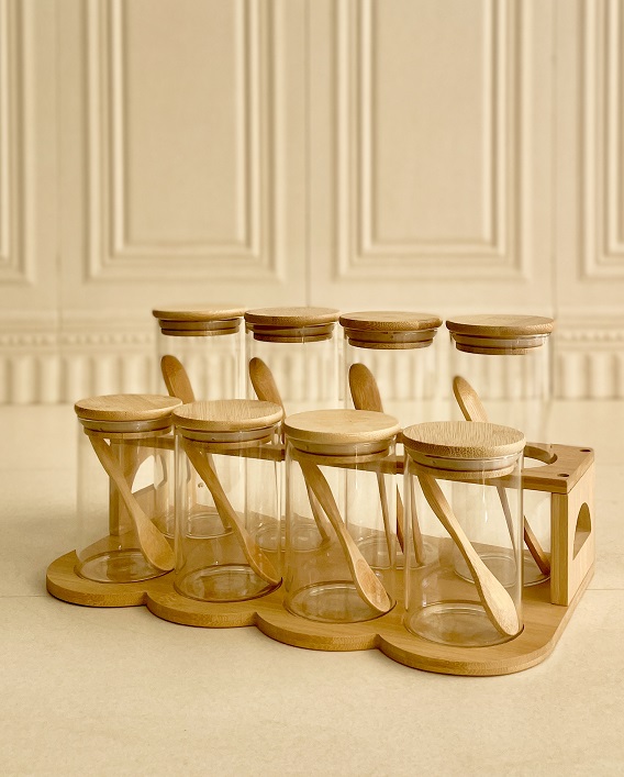Users Comment and point ساها بانکه ادویه 8 پارچه 2 طبقه پیرکس استند چوب 6192
