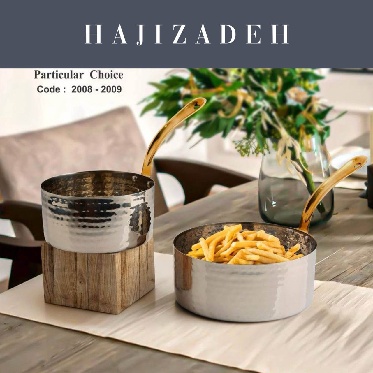 ظروف استیل هندی اردو خوری دسته طلایی گرد 2008 12241