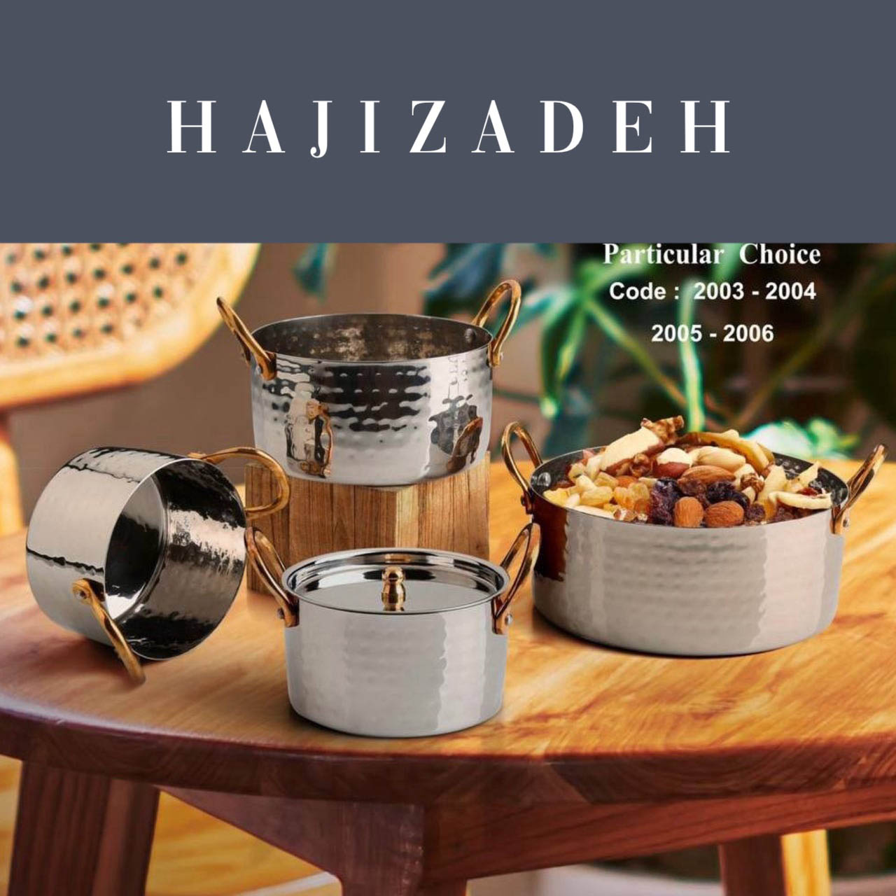 ظروف استیل هندی اردو خوری دسته طلایی گرد 2005 12238