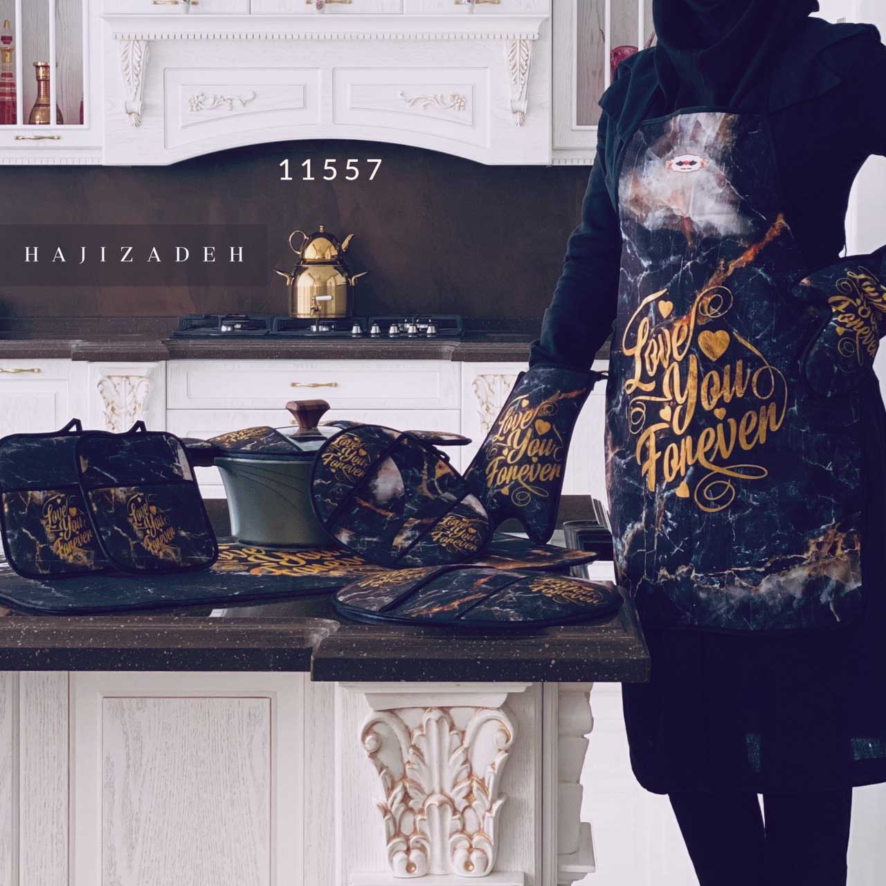 لاروکا سرویس 11 پارچه پیش بند و دمکنی و ابگیر و دستکش طرح ترک مدل ماربل کد 177 11557