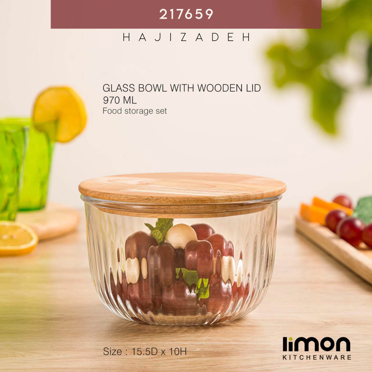 لیمون کاسه گرد شیار دار درب چوبی 970 میلی لیتر 217659