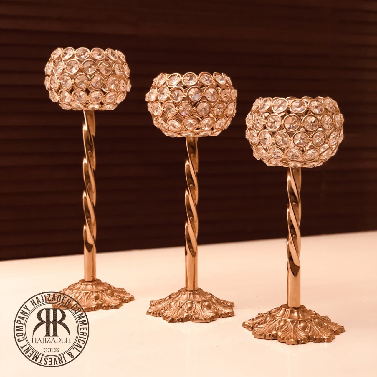 ماهور شمعدان حلقه ای بافت نگین کریستال 3 سایزی 6607