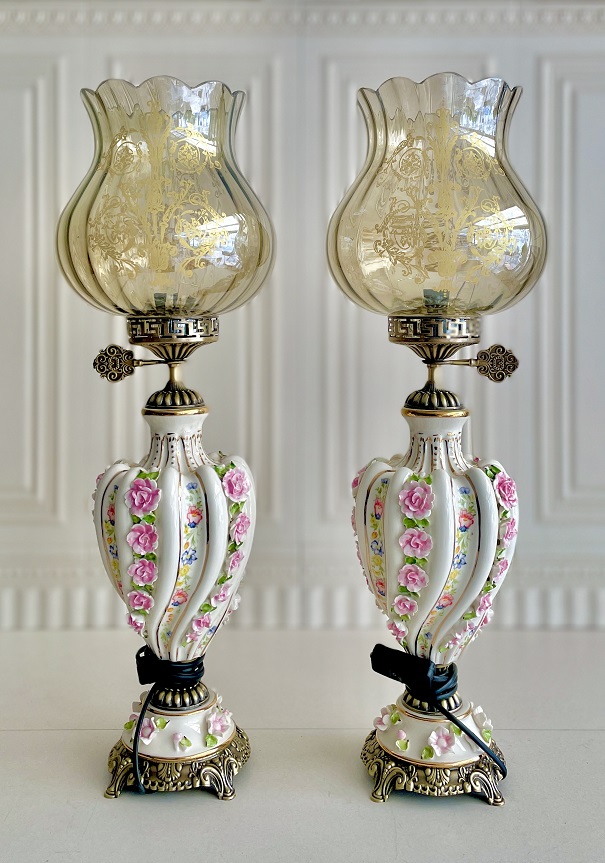 چراغ جفتی طرح فرانسوی گل برجسته صورتی 14813