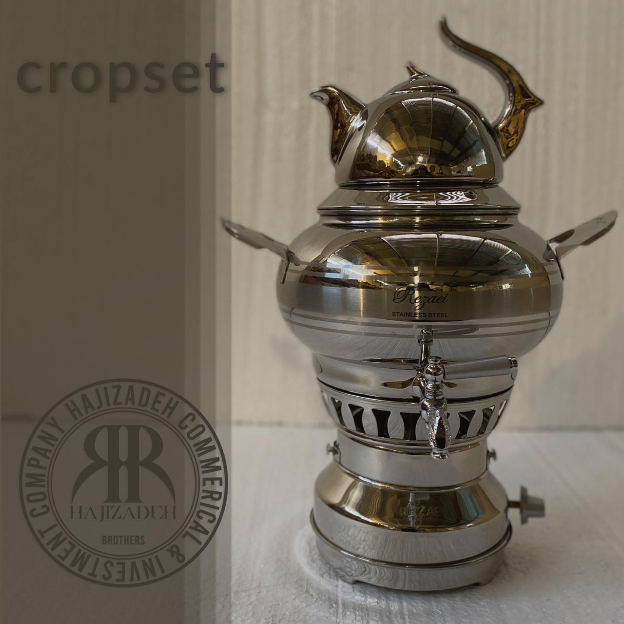 کروپ ست سماور ساحر 3 کاره ترموکوبل دار نقره ای پایه استیل SILVER-1050