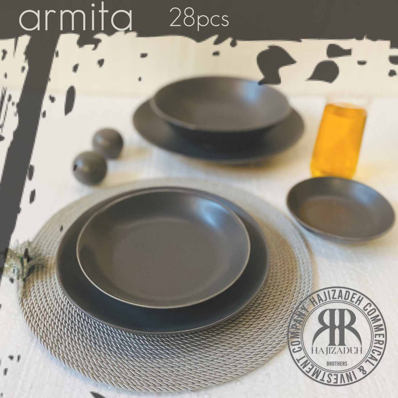 ARMITA ارمیتا سرویس غذا خوری سرامیکی 28 پارچه گرد مشکی 10832