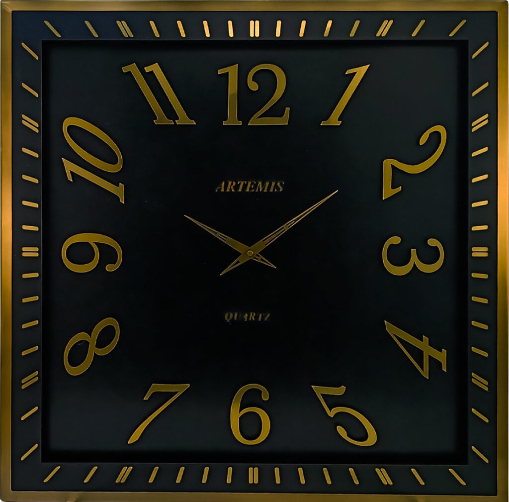 ARTEMIS ارتمیس ساعت دیواری مربع طلایی صفحه مشکی 2038GOLD