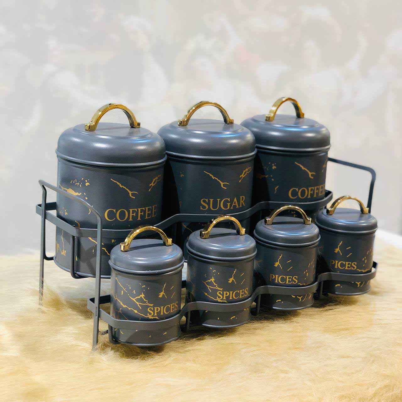 BVK بی وی کی ست پاسماوری 7 پارچه طرح ماربل خاکستری خط طلا VK815595