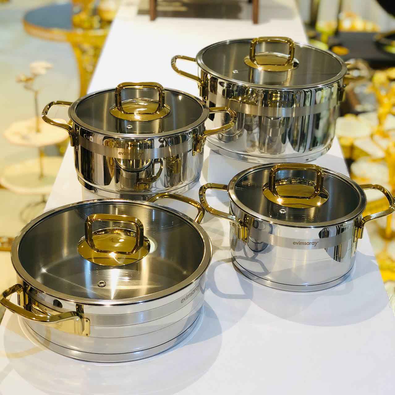 امتیاز و دیدگاه کاربران EVIMSARAY اویمسارای سرویس قابلمه 8 پارچه شفر طلایی 1373