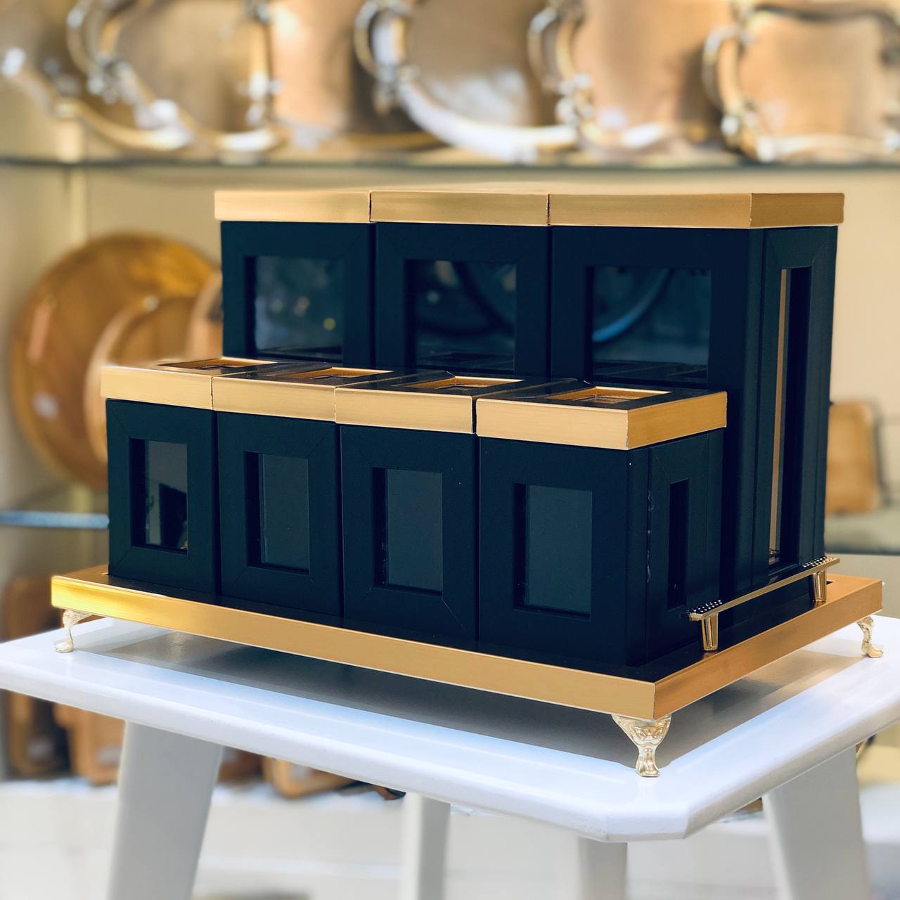 FTH اف تی اچ پی وی سی پاسماوری 7 پارچه اینه ای با سینی مشکی طلایی 9294