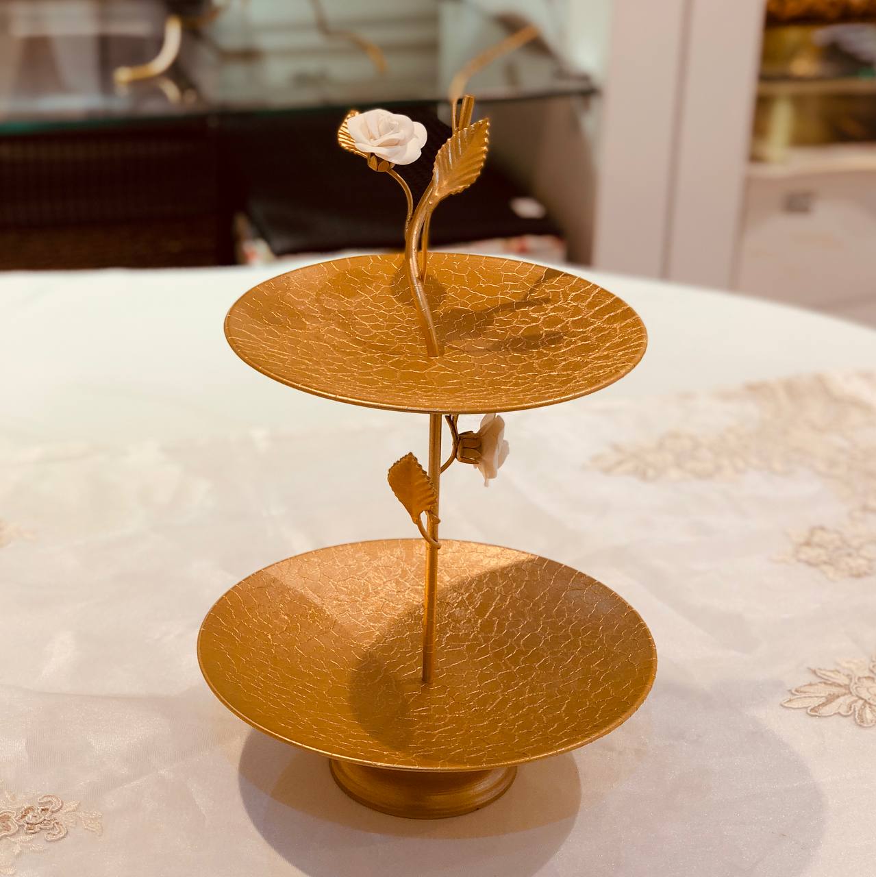 KHAZLI خزلی فلز و سرامیگ گل و پرنده شیرینی خوری 2 طبقه کد 235 – 9499