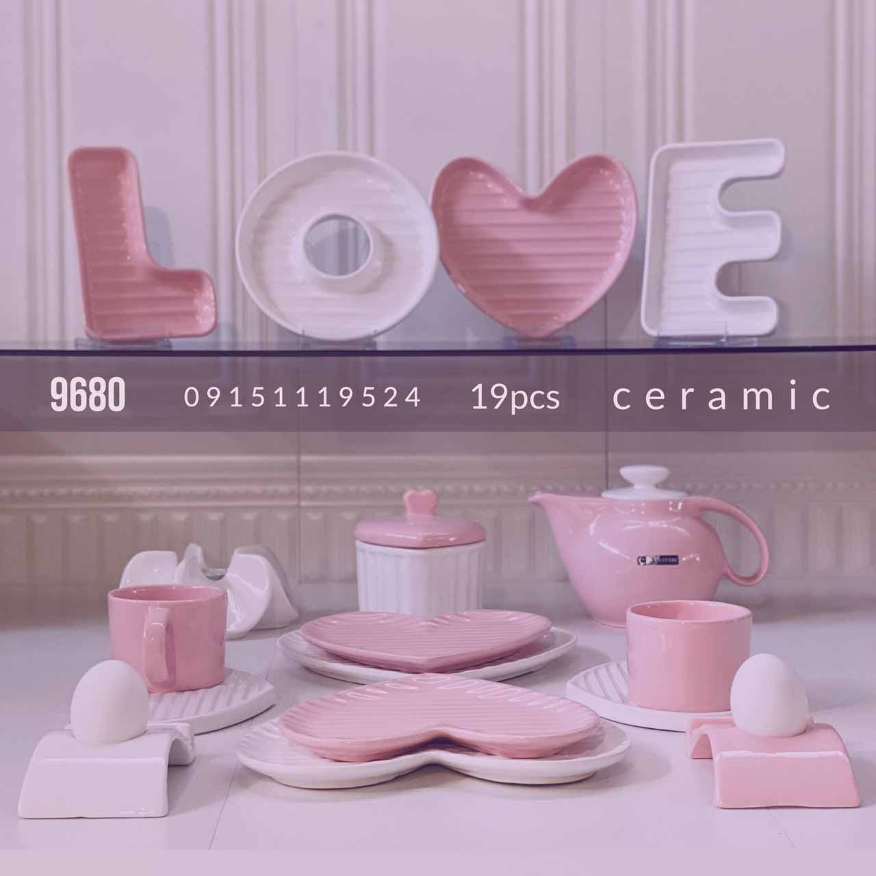 MARKET مارکت گلارا صبحانه خوری 19 پارچه شیار دار لاو سفید صورتی 9680