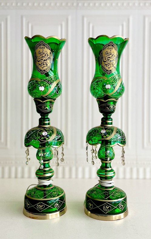 MGM ام جی ام شمعدان جفتی لاله عباسی مذهبی سبز سایز 65 سانت 13381