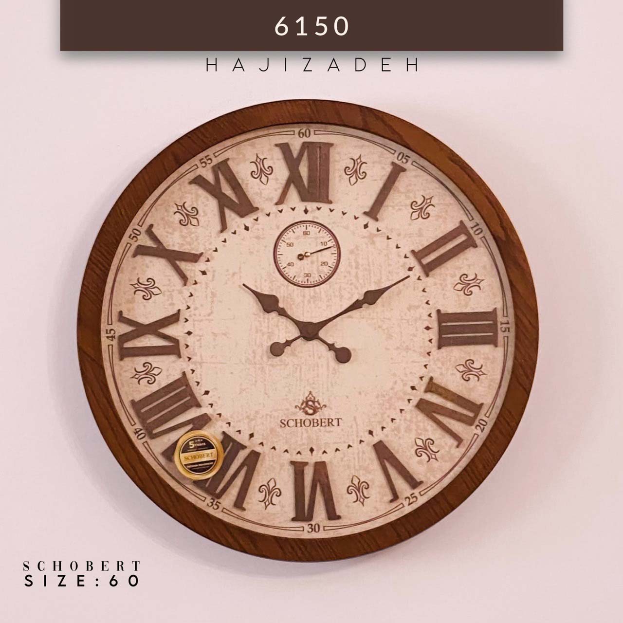 SCHOBERT شوبرت ساعت دیواری فریم چوبی 2 موتوره فندقی قطر 60 – S-6150