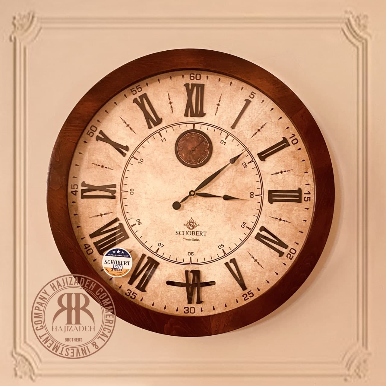 SCHOBERT شوبرت ساعت دیواری یونانی 2 موتوره 6 پاندول قهوه ای قطر 60 – 6122