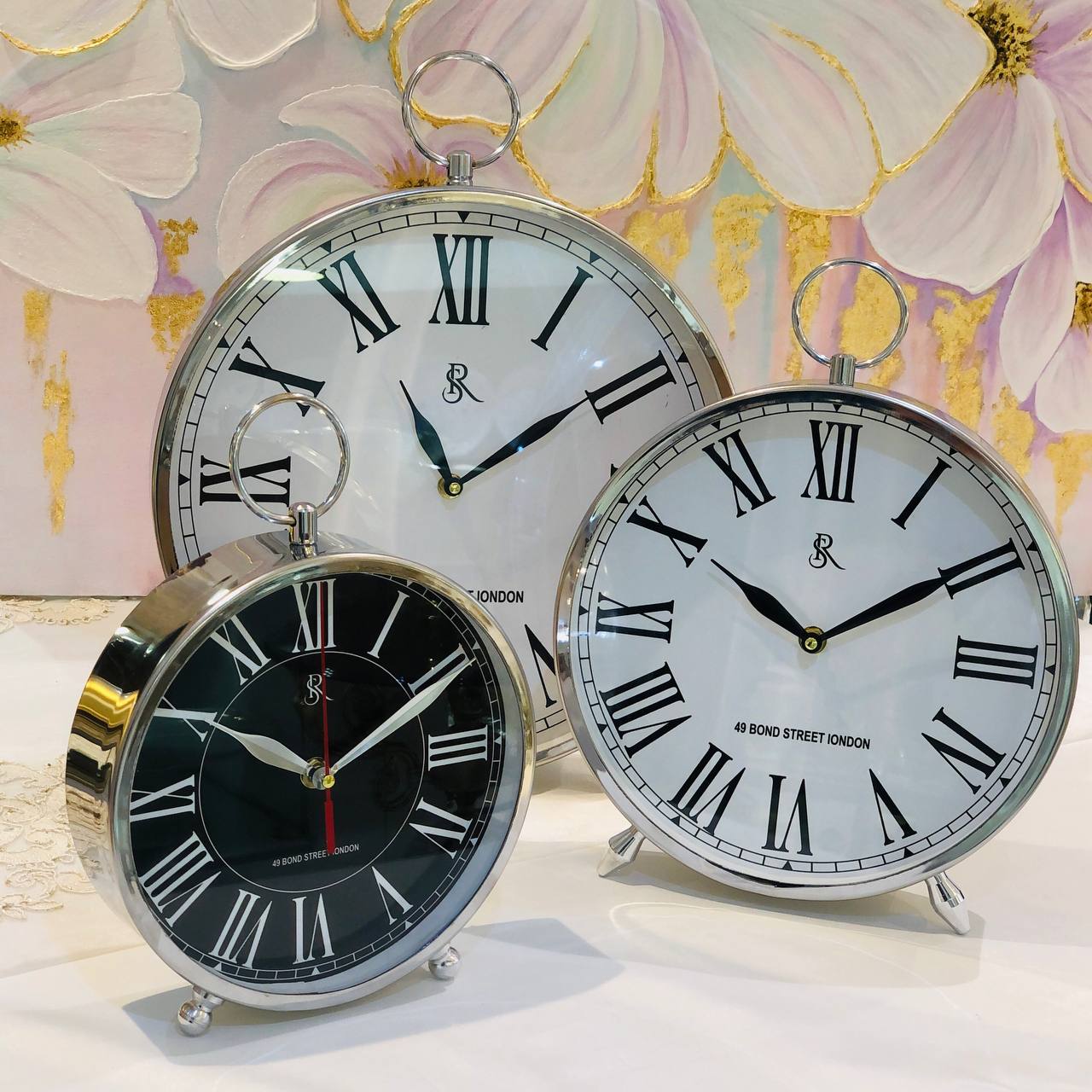 SR اس ار لندن ساعت رومیزی بدنه فلزی استیل گرد قطر 20 – 9524