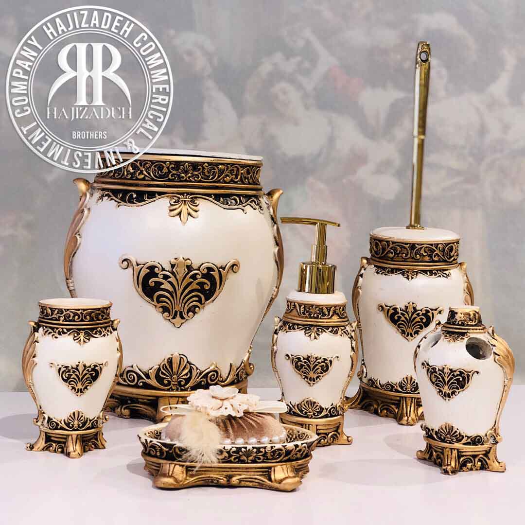 VIOLET ویولت ست بهداشتی رزین خمره ای گل اسلیمی مثلث صدف شامپاین 122-06