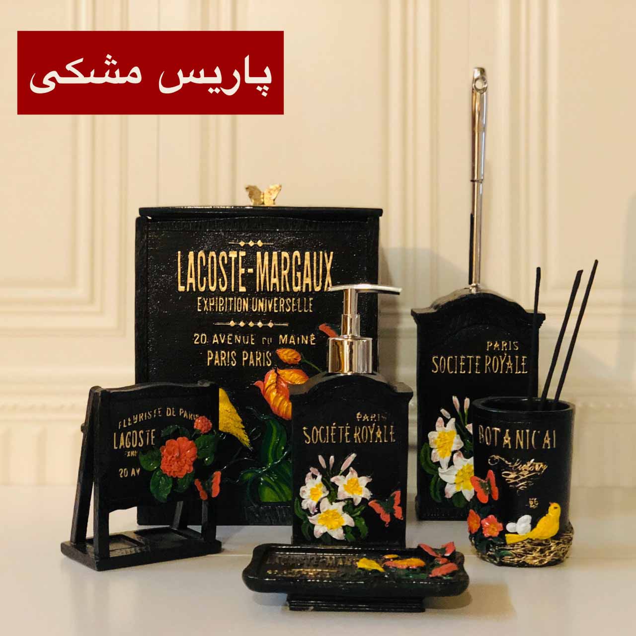 VIOLET ویولت ست بهداشتی رزین طرح پاریس مشکی اکرلیک 10858