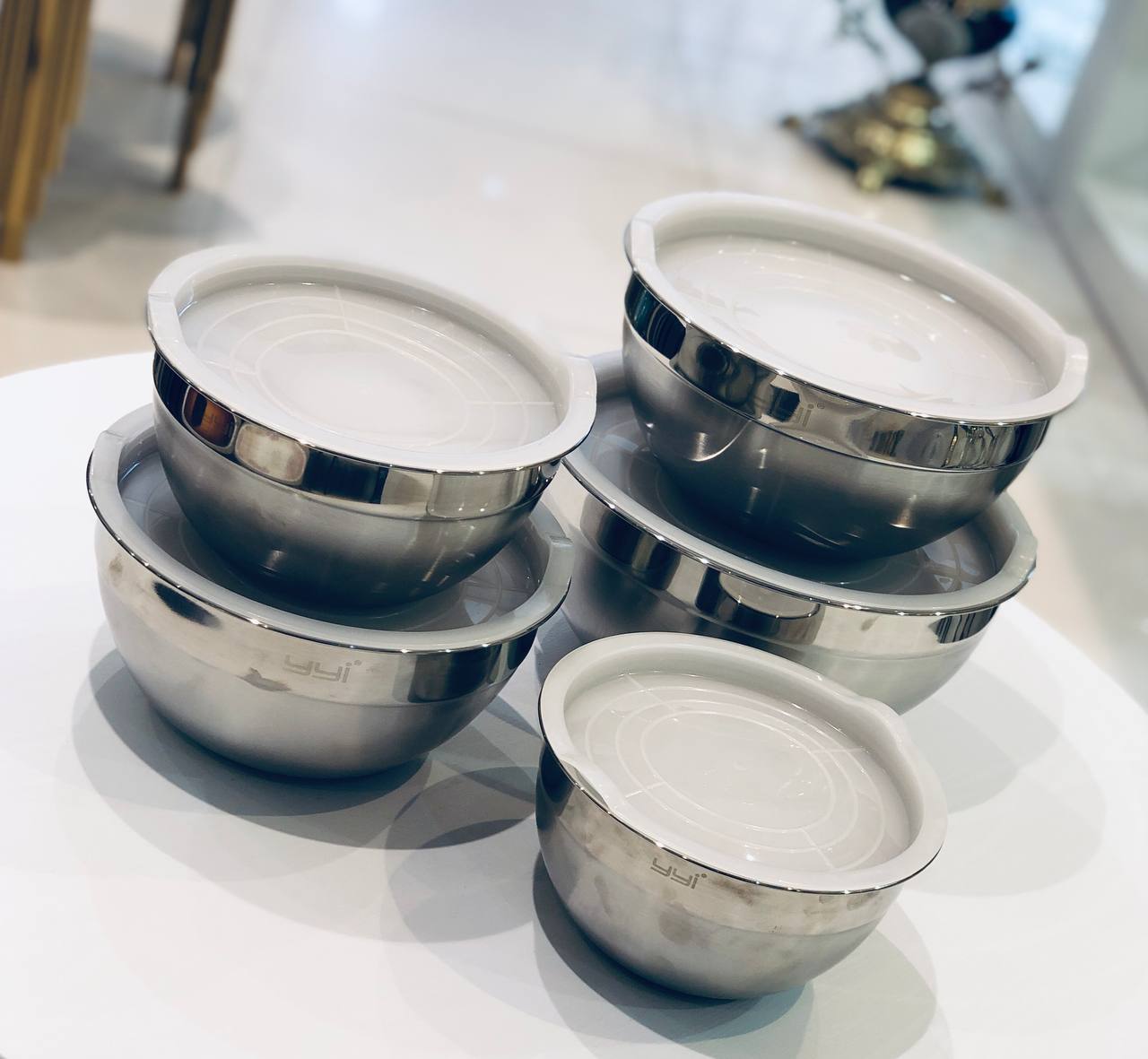 YYI لگن 5 سایزی درب دار استیل سفید بزرگ YYI